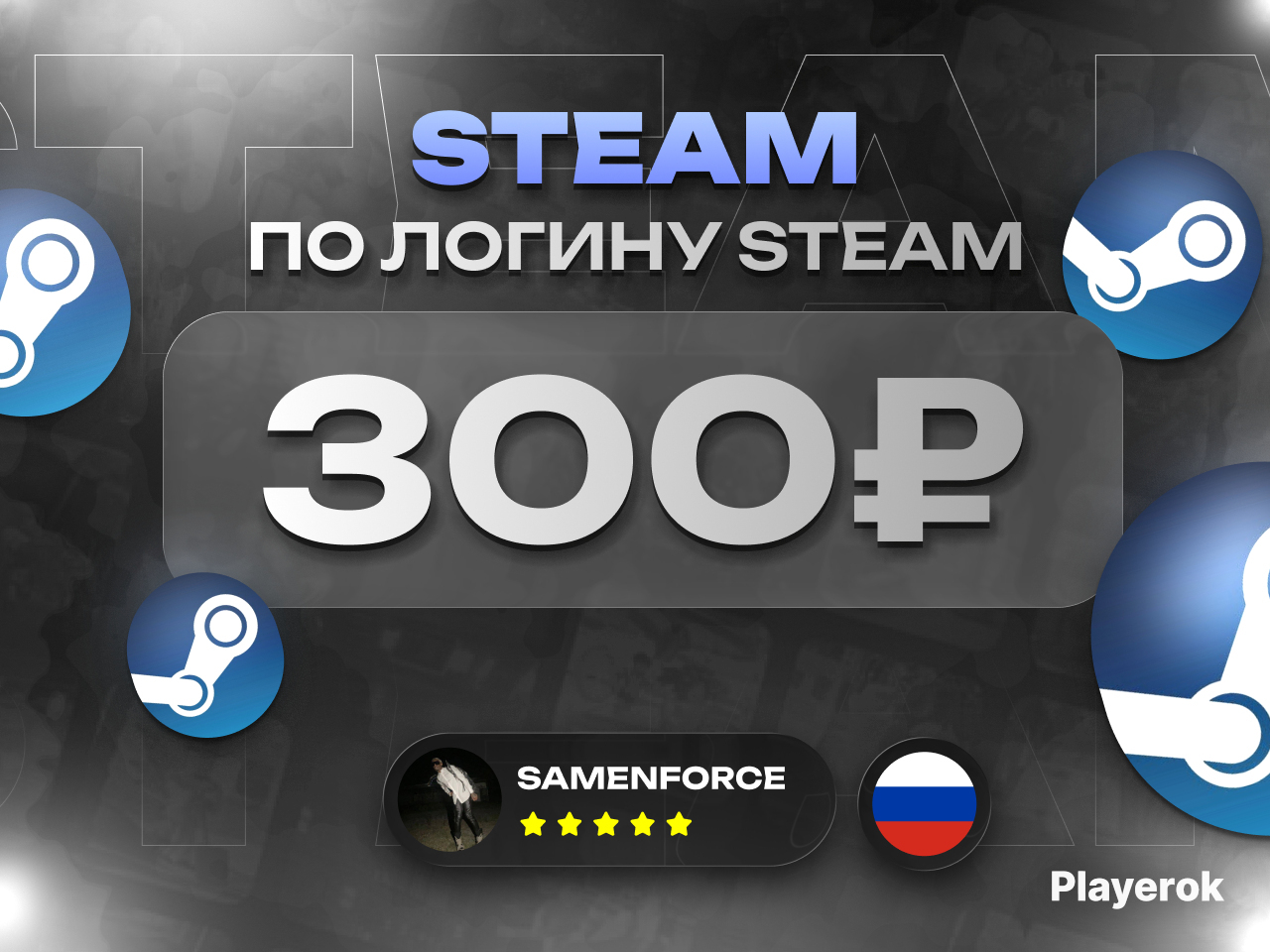 ✅ ТОВАР СООТВЕТСТВУЕТ ОПИСАНИЮ ПРОВЕРЕН И ОДОБРЕН МОДЕРАЦИЕЙ PLAYEROK ✅Крым, ДНР, ЛНР пополнить сможем ❗Для пополнения нужен Ваш логин steam, не никнейм❗ 🔎 Как найти свой Логин Steam: 1️⃣ Запустите лаунчер Steam на своем ПК 2️⃣ Нажмите на ваш никнейм справа-сверху и выберете пункт "Об аккаунте" 3️⃣ В строке "Аккаунт пользователя" будет написан Ваш логин. 🛑Важно🛑 ❌Регион - Россия ❌Убедитесь что верно указали логин, так как мы пополняем баланс именно по нему. Если ошибка в логине, возврат не делаем. ⚡ Как работает пополнение? 📌 Выберите нужное количество пополняемой валюты 📌 При оформлении укажите ваш логин 📌 Получите быстрое зачисление — без передачи данных аккаунта