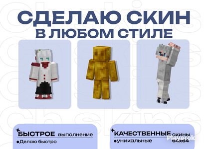 Нарисую скин майнкрафт по вашему скину из роблокс Что требуется от вас: Фото вашего персонажа в Роблокс или описание скина (Одежда, цвета, либо можете прислать фото) Так же могу добавить какие то детали к скину по вашему усмотрению или улучшить/изменить ваш старый скин После выполнения заказа есть возможно подредактировать, но лучше описывать все сразу, чтобы не возникало проблем