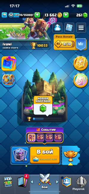 10000кубков Монеты 300 тысяч Гемы 600+ 1 герой- рыцарь 14 ЭВО- МЕГА НАЙТ ЭЛЕКТРО ДРАКОН ТЕСЛА ОГНЕНЫЙ МАГ ВАРВАРЫ СКЕЛЕТЫ БОМБЕР СНЕЖОК ЛУЧНИЦЫ БОЧКА С ГОБЛИНАМИ МАРТИРА ГОБЛИН С ДРОТИКАМИ ФАЕР КРЕКЕР ВАЛЬКИРИЯ Много пинов- 57 Из которых 16 очень редкие на данный момент Хорошая прокачка карт Мега Найт 16 уровня Все виды таверн Повар лучница канонир графиня внимание акаунт не принадлежит возврату по причинам типо - 1) передумал покупать после оплаты 2) не понравился акаунт после покупки 3) акаунт украли сделайте возврат (вы сами отвечаете за свои проблемы не кто другой не должен вам делать возврат средств Иза ваших же ошибок)
