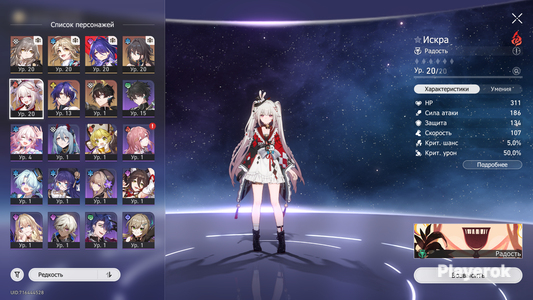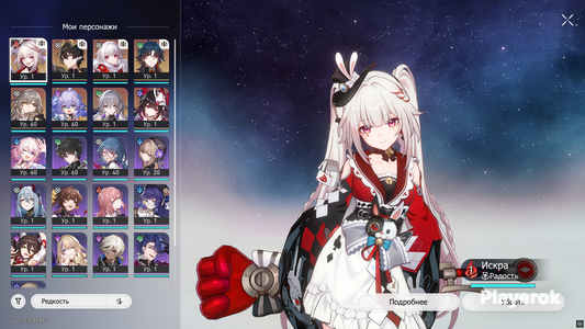 Главный герой: мужской персонаж. Истории: не пройдены В аккаунте также присутствуют другие 5* персонажи такие, как: - Химеко, Яньцинь, Клара, Жуань Мэй, Доктор Рацио, Арчер, Гепард. Все повышены на 50 уровень. Есть сигна на Химеко. Имя акка не менялось. Установлена дата рождения!