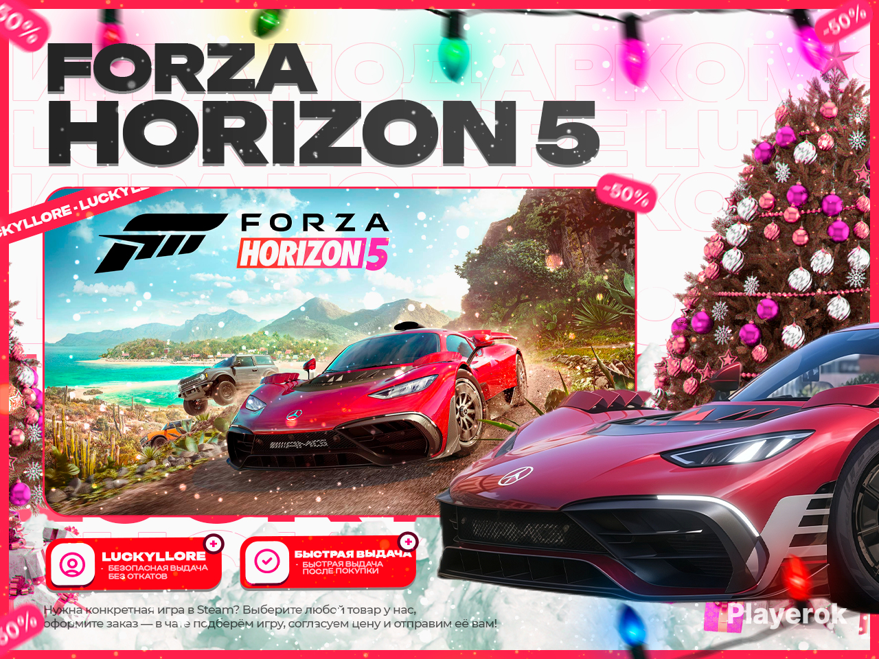 🎮 Forza Horizon 5 (Steam Gift) 💻 Платформа: Steam | 🌍 Регион: Россия + Другие страны СНГ (Казахстан, Беларусь и прочие) ⚡ Мгновенная выдача | 🎉 Гарантированный бонус сразу после покупки 🎁 Дарим подарок, если выдача займёт больше 5 минут 📋 После покупки вы получаете: • Официальный Steam Gift • Быструю выдачу • Персональную помощь в чате при необходимости 🔐 Почему выбирают нас: • 🏆 8000+ отзывов с рейтингом 5.0 — нас рекомендуют • ⚡ Автовыдача — не нужно ждать • 💬 Человеческая поддержка, а не робот • 🎁 Честные условия: бонус, если что-то пойдёт не так ❗ Важно знать перед покупкой: • Для активации требуется аккаунт Steam с регионом Россия или СНГ • Поможем создать аккаунт при необходимости • Возврат средств за купленный товар не предусмотрен