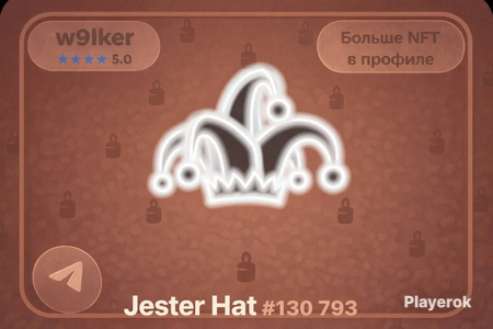 NFT (Jester Hat) -Model: Aurora -Узор: Hermit Shell -Фон: Indigo Dye 📦Процесс сделки: 1. Оплачиваете товар 2. Пишите свой @username (или того, кому хотите купить подарок) 3. Я отправляю подарок (3-4 минуты) 4. Вы подтверждаете получение (можете оставить отзыв по вашему желанию❤️) ✅Подарок без надписи ✅Передача по @username ↪️ 🛡Без входа на аккаунт