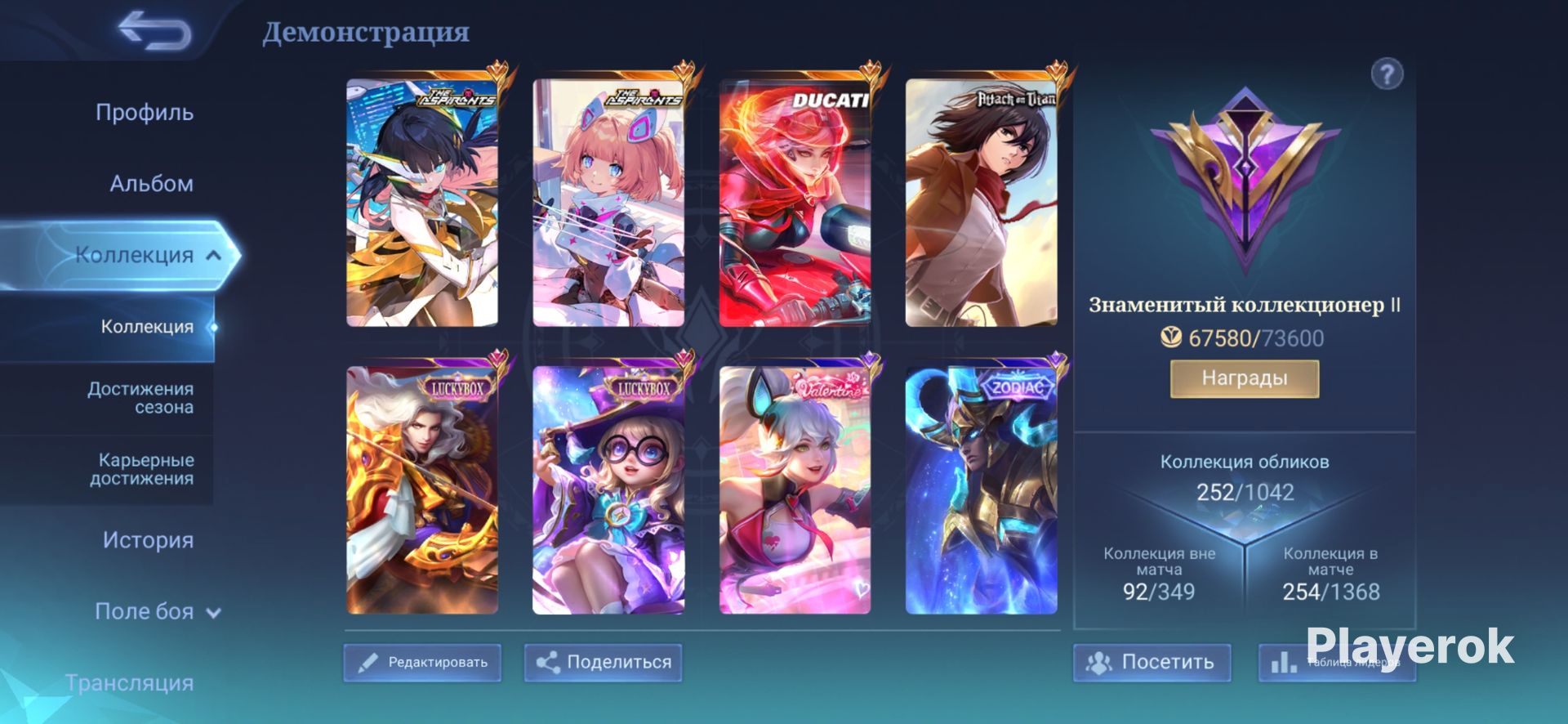 Приветсвую тебя дорогой друг😇 Мой онлайн: с 10:00-00:00⏱️ 261 облик (+9 покрас обликов) и 127 героев Требования от покупателя: Ничего не тратить (пробные облики можно) Даже попытка редакции привязок заставит меня в досрочном времени отменить аренду без возврата Оскорбления в игровом общем или личных сообщениях других игроков естественно запрещена (желательно выключить чат в игре для предотвращения такой ошибки) Аренда аккаунта начинается с момента вашего входа Я помогу с: Проблемами входа Если надо будет что подсказать по игре, (естественно не сразу) Аренда аккаунта 24 часов, по вопросам продления и бронирования обращаться заранее. Приятной игры