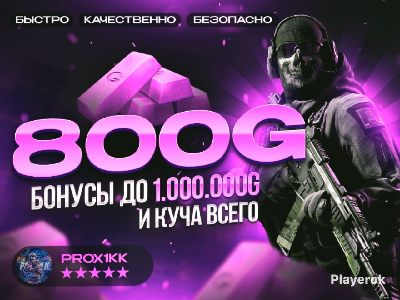 💳 В ПРОФИЛЕ ГОЛДА ЕЩЁ ДЕШЕВЛЕ 🎁 ПОДАРКИ И БОНУСЫ 🟧 На любой заказ: шанс на 500G в подарок (шансы больше с каждым заказом). 🟧 На 3 Заказ: ГОЛДА В ПОДАРОК от 50 до 1.000.000G. 🟧 На 6 заказ: +10% От купленной Голды в подарок. 🟧 На каждый 10 заказ: 500G ГАРАНТИРОВАННО. 💠 Эти Бонусы доступны, если каждый новый заказ отличается прошлого. 👇 Ниже бонусы на все заказы 🟧 СКИДКИ постоянным клиентам на голду. 🟧 ГАЙД по трейду до 5.000G В ДЕНЬ. 🟧 ГАЙД на повышение fps и стабильный пинг в играх. 🟧 ПРОМОКОД на временные скины или другое (Если есть активные на данный момент). 🟧 Если вывод будет больше часа, 5% от купленной голды в ПОДАРОК! 🤑 КАК ПОЛУЧИТЬ ГОЛДУ 🟩 ОБЯЗАТЕЛЬНО НУЖЕН скин USP Ghosts (3G) и сделать скриншот. (Подойдёт любой другой скин с ПАТТЕРНОМ КРОМЕ g22 flock) 🟩 Мы моментально выдаем голду 🟩 Подтвердить заказ, оставить хороший отзыв и пойти играть. ‼️ ВАЖНО ЗНАТЬ ПЕРЕД ПОКУПКОЙ 🟥 Комиссия рынка ПОКРЫВАЕТСЯ мной. Вы получите ровно столько голды, сколько заказали. 🟥 СТРОГО читать инструкцию. Инструкция будет доступна в чате после оплаты. 🟥 Нельзя менять аватарку, цену или отменять! В противном случае я не буду обязан возвращать деньги. 🟥 Весь процесс покупки фиксируется! За попытку обмана - бан на игровой аккаунт. 🟥 После покупки возврат НЕВОЗМОЖЕН! 🤔 ПОЧЕМУ СТОИТ ПОКУПАТЬ У НАС? 🟨 Более 25.000 успешных сделок. 🟨 Моментальное выполнение заказа. 🟨 Вежливый и помогающий Продавец, в сети 24/7. 🟨 Куча бонусов 🎁 🟨 100% Безопасность и Гарантия 🔐 🟨 Подробная инструкция и консультация. 🟨 Лучший сервис, который вы нигде не найдете! 🔐 МЫ гарантируем безопасность вашего аккаунта. Купив у нас, вы никогда не пожалеете! Никаких скрытых комиссий или условий, постоянное начисление бонусов! А так же работаем 24/7, чтобы вы могли купить наш товар в любое время! 💛 Мы ценим каждого покупателя 💛 ❤️ Желаю вам всего наилучшего и приятных игр ❤️