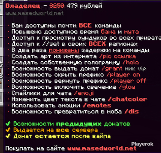 ✅Аккаунт с донатом Владелец навсегда на сервере DexLand.✅ 🔓Полностью чистый и готовый к комфортной игре.🔓 ✨ Аккаунт без ограничений. ✨ Без мутов и блокировок. ✨ Без каких-либо привязок. ✨ Полный доступ после покупки. ❗️ Возврат средств, обмен или отмена заказа не осуществляются, если причина следующая: — «Я передумал» — «Товар мне больше не нужен» — «Выбрал другой вариант» — «Мне не подошло» и подобные причины. 🎥 Обязательно снимите видео с момента оплаты и до входа в аккаунт. ⚠️ При отсутствии видеозаписи возврат или замена невозможны. 🚫 Любые попытки мошенничества будут переданы администрации. 🔐 После покупки сразу измените все данные на свои — ответственность за это лежит на вас. 💡 Если вас не устраивает хотя бы одно из условий — воздержитесь от покупки. Благодарим за понимание и терпение!