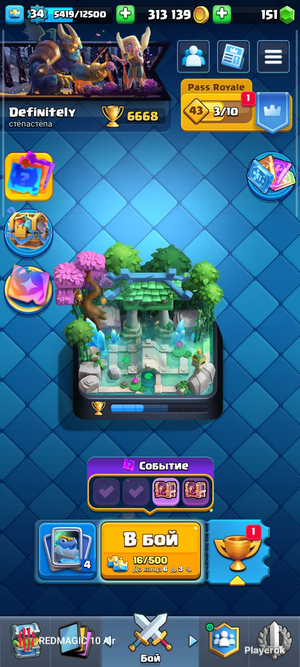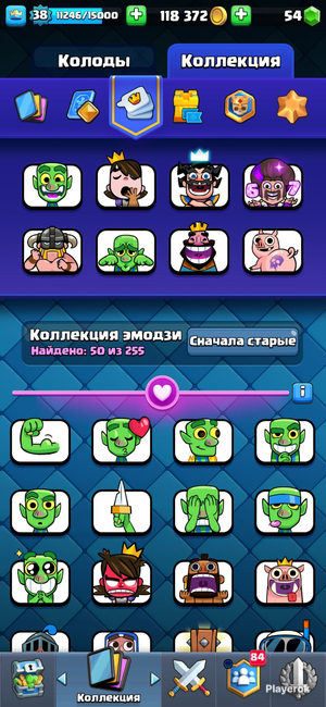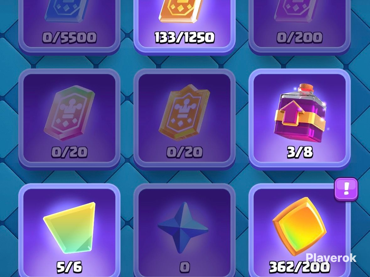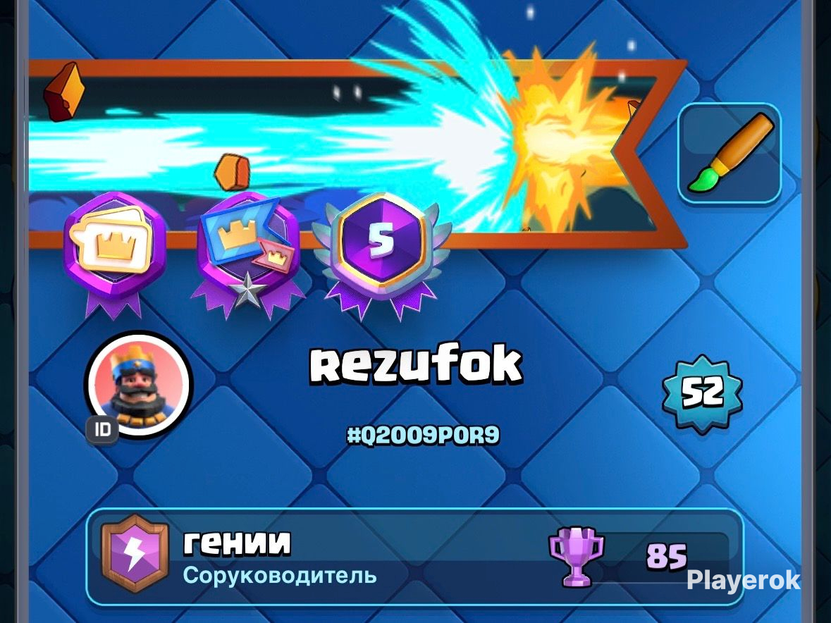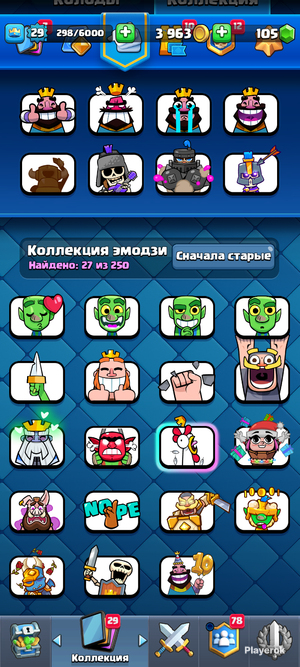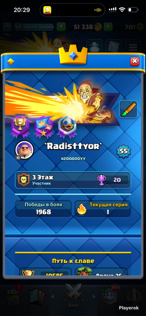 121/121 бойцов 6 бойцов с эволюцией 36 эмодзи 4 скина на башню Лига: 1 мастер Есть уникальные престижные значкие