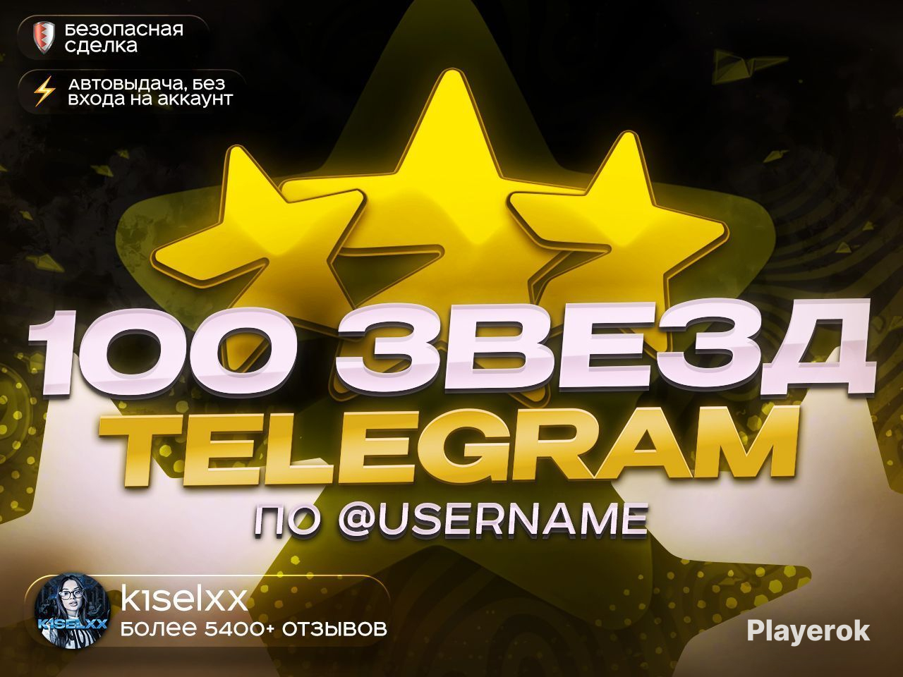 - Сразу указывайте свой @username в поле заполнения (при покупке) , так будет быстрее. - Заказ выполняется автоматически (работаем 24/7) - Моментальная выдача Привет, я K1SELXX с более 5000 отзывов с оценкой 5 звезд. Как проходит сделка? - Вы оплачиваете покупку - Вы присылаете свой юзернейм (например @playerok) - Я приобретаю вам звезды - Вы подтверждаете получение и оставляете отзыв❤️