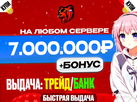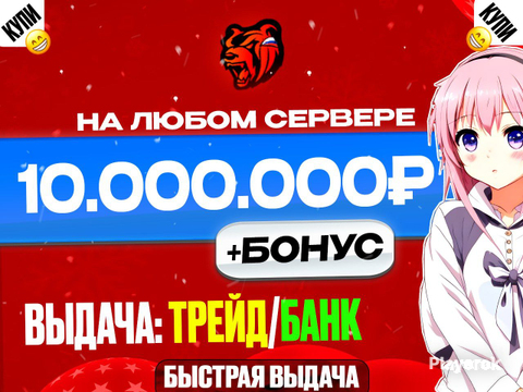 🎁Бонусы до 3КК🎁⚡10.000.000 ₽⚡ВСЕ СЕРВЕРА💎БЫСТРАЯ ВЫДАЧА💎