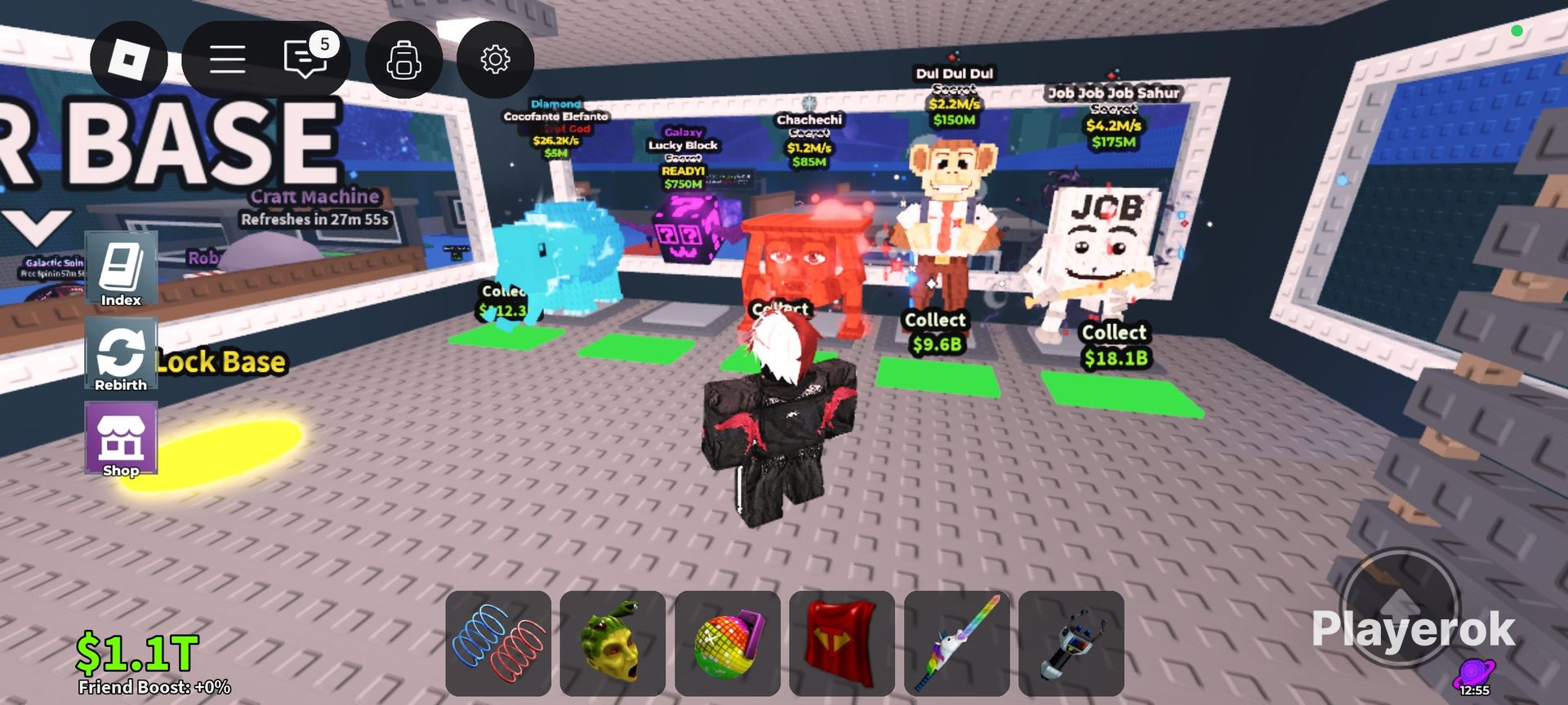 ✨ Продаю топовых брейнротов! ✨ У меня есть редкие и дорогие персонажи с высоким доходом в секунду: 💎 Rainbow Las Tralaleritas — приносит $6.5M/s 🔥 Extinct Matteo — приносит $2.5M/s ⚡ Galaxy bisonte Gluppitere — приносит $2.1M/s ⚙️ Job Job Job Sahur — приносит $4.2M/s 🐵 Dul Dul Dul — приносит $2.2M/s 🟡 Gold Chachechi — приносит $2.5M/s 🟡 Gold Sammyni Spyderini — приносит $1.3M/s 🔴 Chachechi (обычный) — приносит $1.2M/s 🐘 Diamond cocofante Elefanto — приносит $25.2K/s 🌌 secret lucky block galaxy (2300robux) Все брейнроты собраны и готовы к продаже ✅