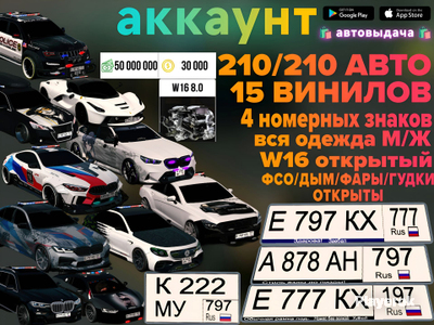 👑Аккаунт в котором↓ KING RANG👑 25ШТ Винилов🚗 ID→ DD444445👤 (Каждая тачка с настройкой, винилом/шильдиками/кастом силы+шифт)⭐ ФСО/КЕНГУРУ/ДЫМ/ФАРЫ-открыто✅ Купленна вся одежда М/Ж👕 Мигалки на всех тачках🚨 6 Номеров на машину🏞️ 50.000.000 Денег💰 30.000 Золота🪙 ⚠️ПОЛНЫЙ ДОСТУП! При покупке, выдаю логин и пароль от почты, и помогу сменить пароль от аккаунта! ⚠️Рынок работает, но иногда разработчики его выключают 🔐 Аккаунт создаётся с нуля, лично мной! 🔐 Аккаунт выдаётся в одни руки! без посторонних людей! ⏩Стоит автовыдача: пароль + логин И Пароль (от почты) + Логин (от почты) 🚫После оплаты, и получения данных от аккаунта, продавец не осуществляет возврат средств, и любые отговорки, не повлекут за собой возвратом денег. 🚫Покупая данный аккаунт, вы автоматически соглашаетесь с условиями сделки. 💫Удачных покупок