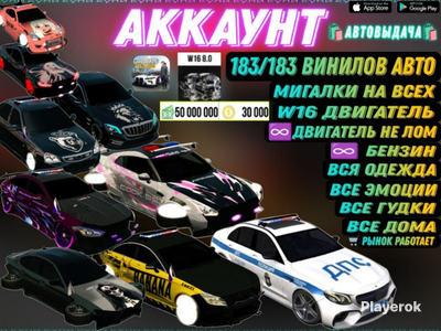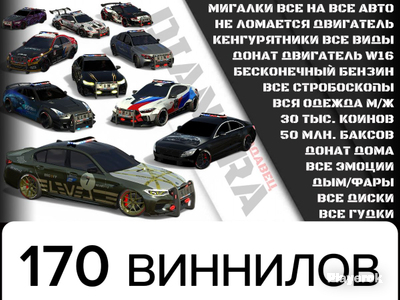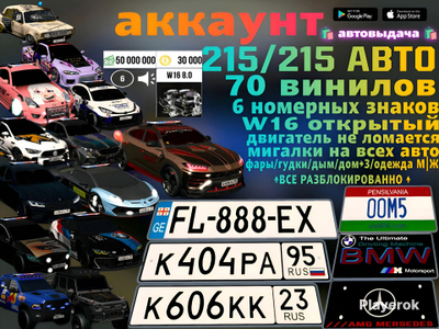 _MEGA VIP PREMIUM ⭐⭐⭐⭐⭐____ _FULL ACCOUNT ✅____________________ НА ДАННОМ АККАУНТЕ ЕСТЬ: 𝟓𝐎.𝐎𝐎𝐎.𝐎𝐎𝐎$ 𝟑𝟎.𝟎𝟎𝟎 Коинов 100-180 ВЕНИЛОВ И БОЛЕЕ!!! АВТОМОБИЛИ (ДОНАТНЫЕ ТОЖЕ) ДОНАТ ДВИГАТЕЛЬ W16 БЕСКОНЕЧНОЕ ТОПЛИВО ЕСКОНЕЧНЫЙ УДАР ПО МАШИНЕ ЦВЕТНОЙ ДЫМ ЦВЕТНЫЕ ФАРЫ ВСЕ ГУДКИ ВСЕ ДИСКИ МИГАЛКИ НА ВСЕ МАШИНЫ КУПЛЕНА ВСЯ ОДЕЖДА И АНИМАЦИИ НА ПЕРСОНАЖА ВСЕ СТРАБОСКОПЫ ! ОРИГИНАЛЬНЫЙ СЕРВЕР ! ! РЫНОК ОТКРЫТ ! БЕЗ БАНА 100% Внимание может быть на пару миллионов меньше денег или на пару тысяч меньше монет