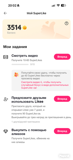 Передача суперлайков без входа в аккаунт