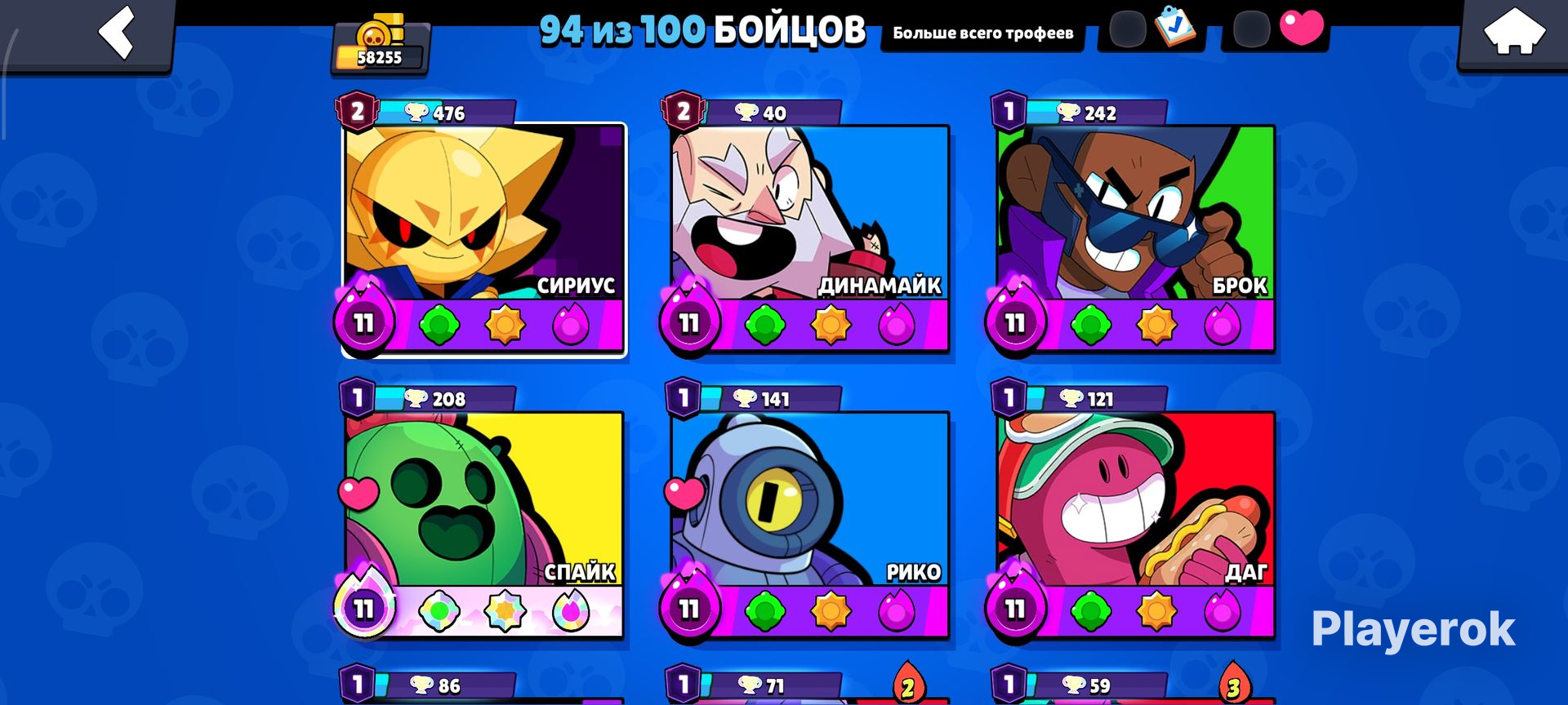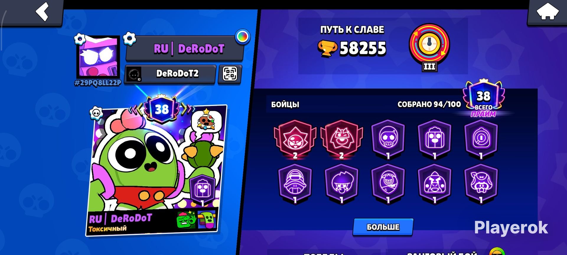 На акаунте: 38 титулов 38 праймов Много скинов Было куплено 2 бравл паса