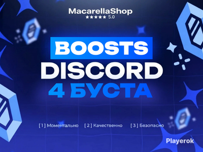 🌟 Хотите прокачать свой Discord-сервер бустами? Тогда вам - к нам! Повышайте уровень сервера, открывайте сотни слотов для эмодзи, эксклюзивный баннер, уникальные возможности для себя и другие бонусы - с полной гарантией на весь срок действия. Мы предоставляем любые количества бустов - десятки и даже сотни. Бустим как чётные, так и нечётные количества - для нас это не проблема! 🌟 Таблица уровней бустов: · 1 уровень - 2 буста · 2 уровень - 7 бустов · 3 уровень - 14 бустов 🌟Покупая у нас, вы получаете: · Активные бусты на весь срок · Быструю выдачу бустов · Полную безопасность - бусты не слетят сами по себе · Поддержку 24/7 в чате · Возможность возврата средств, если бусты слетят по нашей вине (Исключения: кик/бан аккаунтов с бустами с сервера.) 🌟 Как оформить заказ: 1. Совершаете покупку 2. Указываете в чате ссылку на свой Discord-сервер 3. После чего продавец быстро активирует бусты на вашем сервере: и вам остаётся подтвердить получение после чего написать небольшой отзыв :) Важно! После покупки не выгоняйте с сервера наши аккаунты с бустами - иначе бусты пропадут.