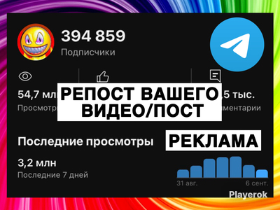 🛑ВАЖНО ДО ЧИТАТЬ ДО КОНЦА🛑 РЕКЛАМА ВАШЕГО ТЕЛЕГРАММ (канал-чат-бот)〽️ ДЕЛАЕТСЯ В ЮТУБ ПОСТЕ‼️ Реклама длится 7 дней💯 Хороший приход💫 Не накрутка‼️ Реклама делается на ютуб канале с около 400k подписчиками в сообществе канала! От вас требуется только ссылка на ваш канал и текст✅ В подарок дам хороший совет🍀 Это лучший способ начать свой путь к блогерству! Реклама даст вам хороший старт 🚀 Рекламируем любой канал так же любой соц сеть канал кроме запреток⚠️ 💠почему стоит купить именно у меня✨ Есть галочка в ютубе это значит канал без единой накрутки и с настоящей аудиторией!✅ В лс могу скинуть статистику! У меня самый выгодный реклама за свои деньги за 149₽ реклама на 400k человек🔥 За покупку могу дать советы, отвечаю на ваши вопросы‼️ Хороший приход✅ Вежливый продавец🌸