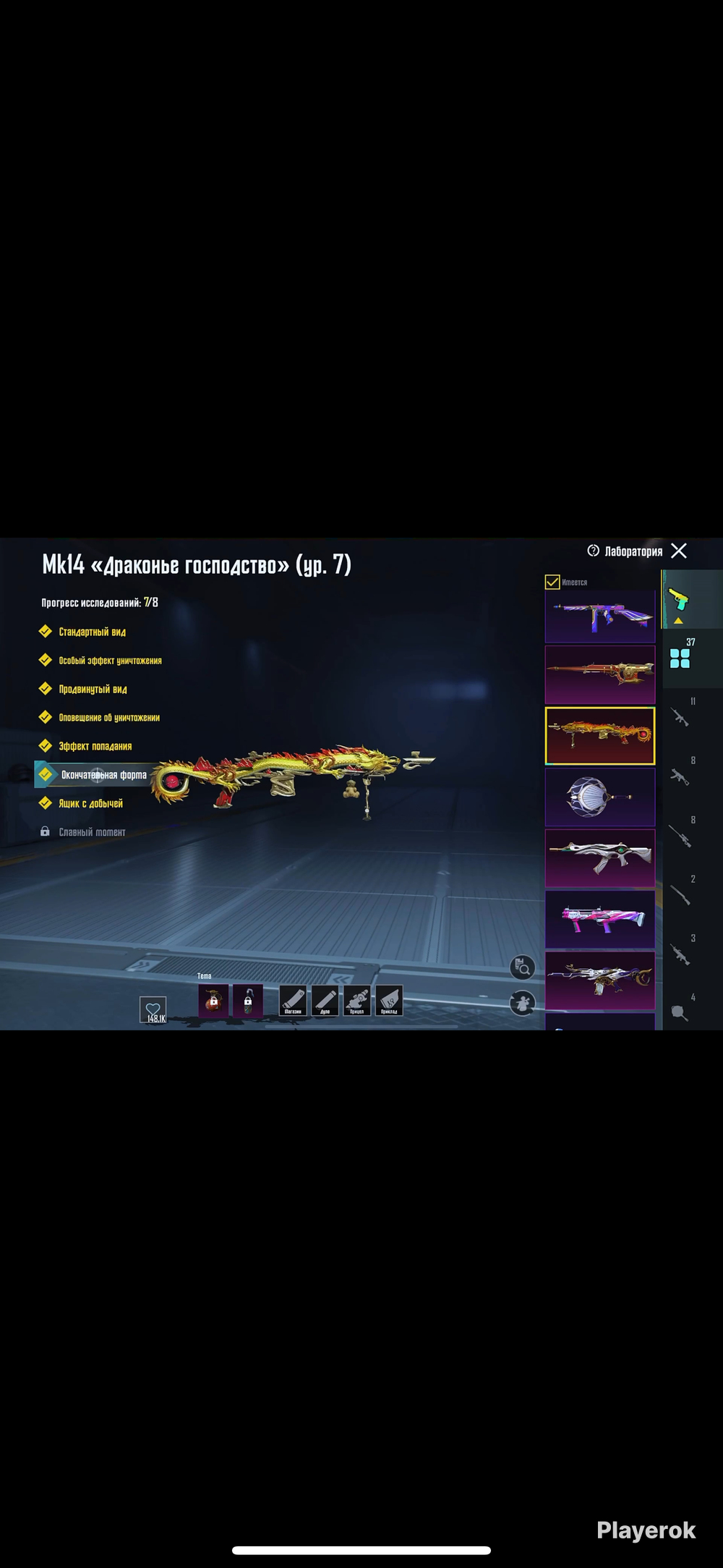 Костюмы Х Чарующая флора 4 лвл Множество топ мификов 2 новые Годзиллы Разнообразие сетов Жир эмоции Машины: додж, юбилейное мирадо М416 Разрывающий рев, ледник 7 лвл АКМ Космический адмира 7 лвл MK14 Драконье господство 7 лвл AMR Опаляющее благословение 4 лвл MG63 Небесная охотница 4 лвл UMP Юбилей FULL 15 киллчатов