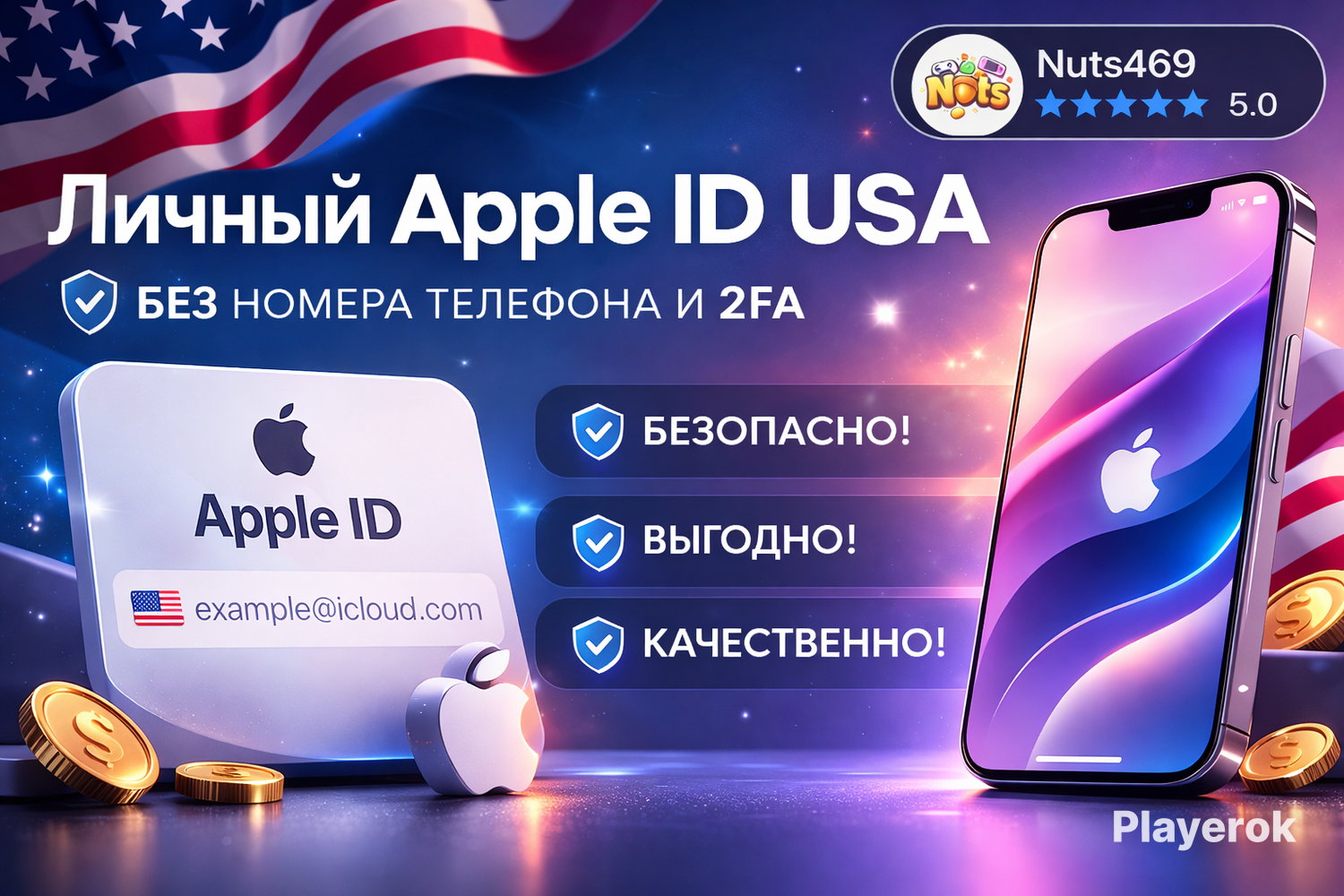 😱 САМОЕ ЛУЧШЕЕ, БЫСТРОЕ И ДЕШЁВОЕ ПРЕДЛОЖЕНИЕ НА РЫНКЕ 😱 После оплаты вы сможете получить: ✅ Личный Apple ID USA без номера телефона, данные от которого будете знать только вы! ✅ Помощь и поддержку на каждом этапе! ✅ Формат данных: 🔑 Логин: xxxxx@iCloud.com 🔐 Пароль ❓Ответ на контрольный вопрос 1 ❓Ответ на контрольный вопрос 2 ❓Ответ на контрольный вопрос 3 Подходит для загрузки приложений, игр и сервисов, доступных только в американском регионе. 💎 Преимущества аккаунта: 🔐 Без номера телефона 🚫 Без 2FA 🇺🇸 Регион США (USA) 📱 Подходит для App Store ⭐️ Вход по контрольным вопросам ⚡ Мгновенная помощь после покупки В отличие от других продавцов, мы выполняем заказ так, чтобы только покупатель знал данные от своего личного аккаунта. 🔰 В нашем магазине Вы найдёте качество, которое подтверждается отзывами других покупателей 😎