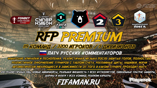 ❗Обновление мода выходит через 2-4 дня после обновления FC (могут быть задержки) ❗Обновление для перекупов платное. 200% от стоимости мода ❗Работает только на ПК и ноутбуках САМООБНОВЛЕНИЕ ✅ Что вас ждёт в этом моде: Полностью обновлённый российский футбол: ▪️ РПЛ — 16 команд ▪️ Первая Лига — 18 команд ▪️ Вторая Лига — «Золото» и «Серебро», как в реале (2 группы: 10 + 10 = 20 команд) ▪️ МФЛ — 24 команды с реальным Кубком Лиги и закрытой лигой 🏆 Фишки патча: Реальный формат Кубка России: путь РПЛ и путь регионов В плей-офф МФЛ и Кубка Лиги — при ничьей сразу серия пенальти! Полная атмосфера российского футбола и медийных клубов