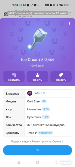 Передача подарка через @username