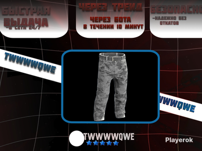 👀100+ скинов в профиле. От 3х покупок +подарок 🎁 https://playerok.com/profile/WaneDip/products 🚀Быстрая отправка через трейд 👉 оплачиваете товар 👉Скидываете в чат свою трейд ссылку ❗Её можно найти по этой ссылке: https://steamcommunity.com/id/me/tradeoffers/privacy#trade_offer_access_url ❗Важно, чтобы у вас не было трейд бана. Наличие можно проверить по этой ссылке: https://help.steampowered.com/ru/wizard/HelpWhyCantITrade