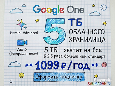 🚀 ОФИЦИАЛЬНАЯ ПОДПИСКА GOOGLE AI PRO — 12 МЕСЯЦЕВ Подключение напрямую на ВАШ личный Google-аккаунт. Никаких серых схем. Всё официально. 🔥 ЧТО ВХОДИТ: 🧠 Gemini AI Pro — БЕЗЛИМИТ 🍌 Nano Banana Pro — БЕЗЛИМИТ (Nano Banana встроена ВНУТРИ Gemini) 🎬 Veo 3.1 — 12 000 кредитов ≈ до 700 видео за год ☁️ Google One — 2 ТБ хранилища 🔐 Доступ остаётся только у вас 📘 Инструкция + поддержка 📅 СРОК: — Официально 12 месяцев ⏰ ВАЖНО ПО СВЯЗИ: Я работаю преимущественно ДНЁМ. Если я не отвечаю 10–20 минут — значит я сплю. Как только возвращаюсь — сразу отвечаю и продолжаю диалог. Подходит для: видео, контента, дизайна, AI-работы, обучения и бизнеса.