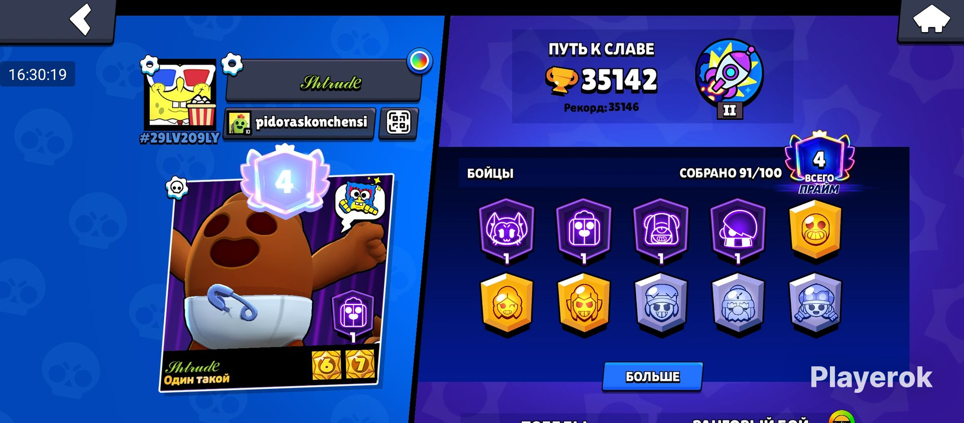 1) 91👤 2) 35.000🏆 3) Очень много редких и легендарных скинов/пинов/аватарок и.тд 4) Аккаунт чистый ✅