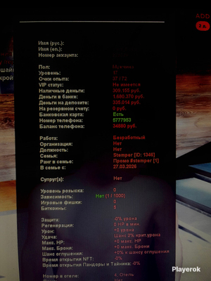 ✅Ещё больше валюты/аккаунтов, которые в наличии смотрите у меня в профиле! 💜playerok.com/profile/KHVOROSTENKO/products💜 ✅2 LVL 💸~40.000.000₽ общее кол-во виртов💸 🎁 Рег данные + Без Привязок! 🎁 🤖 Аккаунт выдаётся с АВТОВЫДАЧЕЙ🤖 🎈 Подробное описание аккаунта: 2 LVL ~От 1300 AZ COINS (~32.000.000₽) ~Предметов от 5.000.000₽ в инвентаре ~2.000.000₽ наличными в инвентаре ~Временный транспорт BMW M5 E60 (3 payday) ⭐ Предметы считались по усредненной цене, возможна небольшая разница с действительными ценами как в большую, так и в меньшую сторону. 🦋 Данные об аккаунте указаны не полные для полной конфиденциальности продажи, указана лишь примерная сумма налички. Не стоит спрашивать полную сумму, вы платите за сумму, указанную в описании аккаунта. ❗ Важная информация перед покупкой При покупке аккаунта с автовыдачей вы ОБЯЗАТЕЛЬНО должны записывать процесс покупки на фрапс (чтобы в случае проблем с аккаунтом вы могли это доказать). В случае отсутствия фрапса, какие-либо гарантии на аккаунт для вас пропадают. После покупки аккаунта с автовыдачей, возврат средств не осуществляется ни при каких условиях, так как данные об аккаунте попали к вам в руки, что даёт определённые риски на блокировку аккаунта. В случае если предметы вас не устроили - возврат средств так же не осуществляется, так как цены на товары в инвентарях аккаунтов полностью ликвидны и актуальны. Указаны средние цены на ПРОДАЖУ, а не скупку в лавках на цр После покупки аккаунта, вся ответственность за аккаунт передаётся полностью на вас. От себя я предоставляю лишь регистрационные данные, которые администрация может спросить у вас при проверке на взлом аккаунта (при телепорте администратором). Однако, бывают и те случаи, когда админы банят без проверки, в этих случаях - ответственность за ваш аккаунт я не несу. Все мои аккаунты были прокачены лично мною, рег. данные на 100% верные, аккаунты полностью валидные и соответствуют описанию.