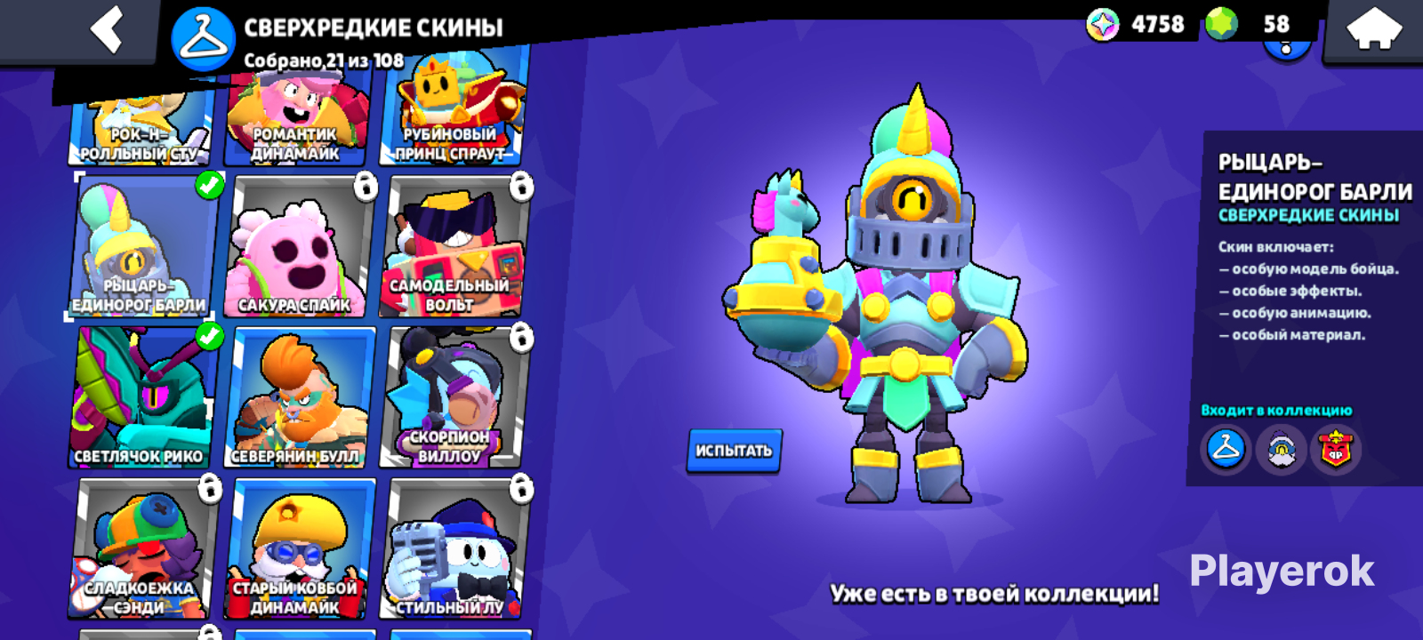 Топовый аккаунт,на нем имеется: -10к кубков -47 персонажей -2 легендарки -очень редкий скин на сту -1 прайм -4к блингов -10к золота -58 кристаллов -54 сверхредких скина -21 сверхредкий скин -8 эпических скинов -2 мифических скина -1 легендарный скин Плюсы брать у меня: -Работаю не мало,но низкие цены🙌 -Полная безопасность за аккаунт ☘ -Быстрое и качественное обслуживание ❤️ -Сделка проходит на высшем уровне 🌷