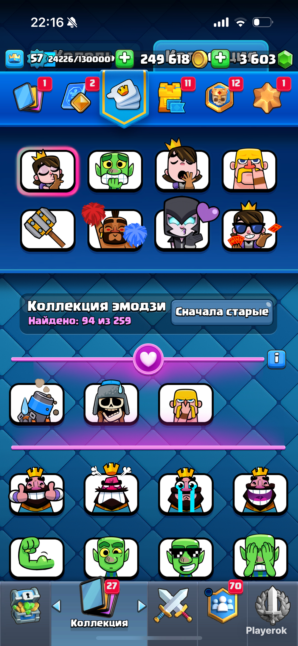 ✅✅Очень хороший прокаченный аккаунт, на аккаунте есть все карты, на аккаунте есть много хорошо сочетаемых колод по уровню карт, и также на аккаунте есть много эмодзи, и есть донатные эмодзи, очень хороший аккаунт за свою сумму✅✅