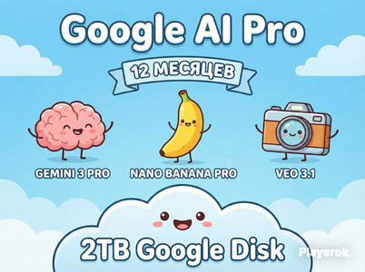 📦 Google One — 2TB хранилища + AI возможности В подписку входит: ☁️ 2 ТБ облачного пространства 📁 Google Drive для хранения файлов 📸 Google Photos для фото и видео 📧 Gmail без ограничений по месту 🎁 Бонус — доступ к AI сервисам ✔ Gemini 3.1 Pro ✔ генерация видео Veo 3.1 ✔ генерация изображений Nano Banana Pro ✔ Gemini Flash и другие версии ✔ 1000 AI-кредитов каждый месяц ⚡ Получение аккаунта: 5–15 минут после оплаты