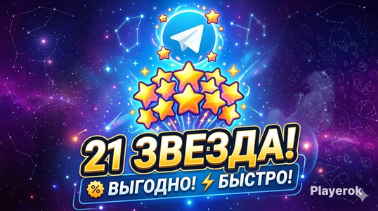 Самое честное предложение на рынке! 🔹 Товар: 21 Звезда (Stars) 🔹 Срок: От 1 до 5 минут 🔹 Цена: Лучшая на Playerok Жми кнопку покупки и сияй! ✨👾