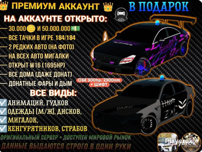 👤 Аккаунт в котором ⤵️ 183-ВИНИЛА✅ Гудки + Дым + Фары - разблоктрованно✅ Кенгуру+ФСО+Мигалки открыты✅ Открыты все автомобили✅ Мигалки на всех тачках✅ Двигатель не ломается ✅ W16 двигатель открыт✅ Оригинальный сервер✅ Бесконечное топливо✅ Все дома открыты✅ 50 млн денег ✅ 30к золото✅ Вся одежда✅ ‼️10 Тачек полу мод ~ остальные 300/414/1695/1780HP ‼️Нету тачек из обновления(G90/Автобус/итд - можно купить за золото) ⚠️Рынок работает, но иногда разработчики его выключают 🔐 Аккаунт создаётся с нуля, лично мной! 🔐 Аккаунт выдаётся в одни руки! без посторонних людей! ⏩Стоит автовыдача: пароль + логин 💫 ВАЖНО: - АКК ДЛЯ : ( Android / IOS / Linux / MAC / Windows) - ЕСТЬ МАШИНЫ КОТОРЫЕ УБРАЛИ С ИГРЫ - ЭТО ЛАМБОРГИНИ ВСЕХ МАРОК - Машин Ламборгини нет на устройствах Андроид - это особенность самой игры - Ламборгини доступны только на версии игры для iOS / Айфон / Айпад. Если вы на айфон играете, то Ламборгини на аккаунте есть. На версии для Андроид эти машины не доступны. 🚫После оплаты, и получения данных от аккаунта, продавец не осуществляет возврат средств, и любые отговорки, не повлекут за собой возвратом денег. 🚫Покупая данный аккаунт, вы автоматически соглашаетесь с условиями сделки. 💫Удачных покупок