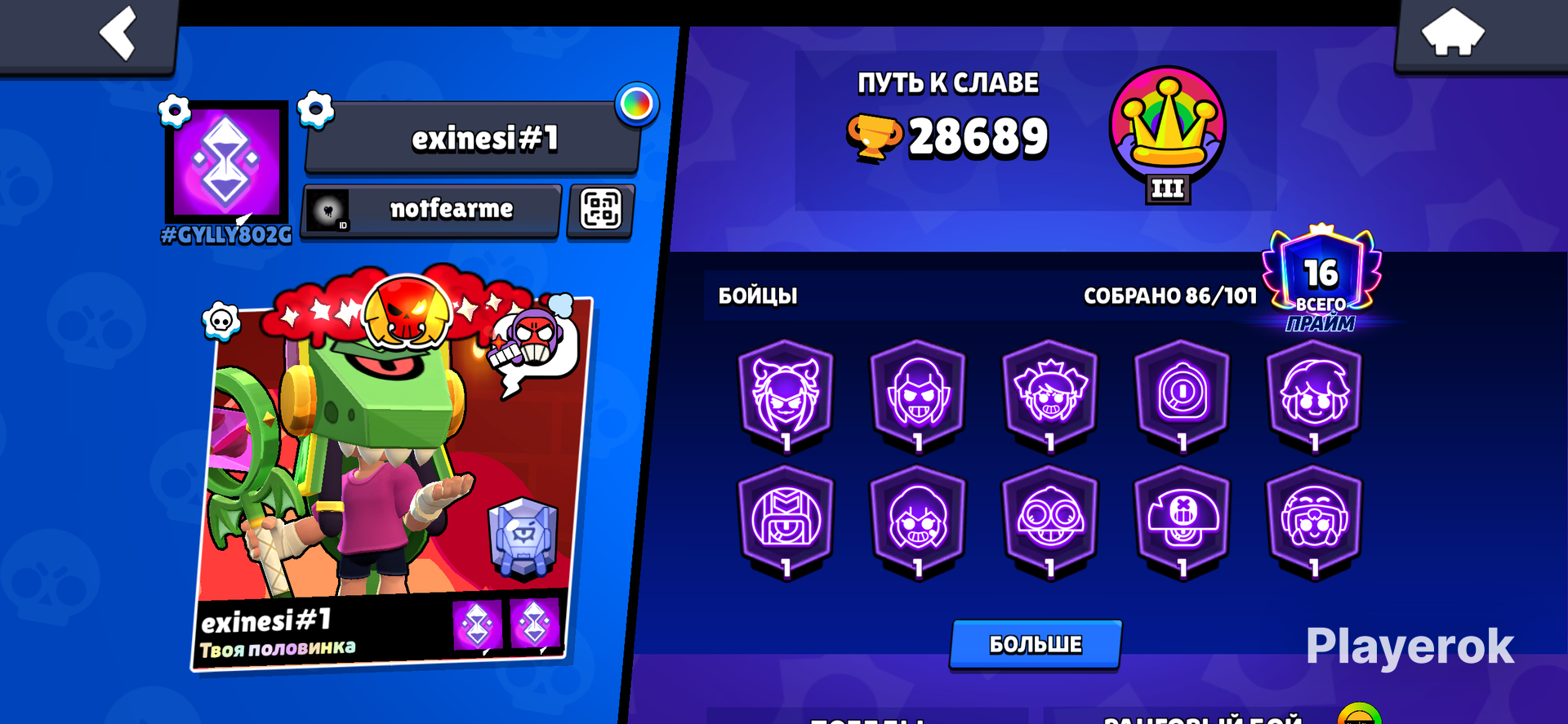 ЕСТЬ НОВЫЙ БОЕЦ НАДЖИЯ ПРОКАЧЕНА НА 11 СИЛУ Продаю личный аккаунт Brawl Stars с отличным прогрессом. Аккаунт отлично подойдёт для комфортной игры без долгой прокачки. Можно сразу играть на высоком уровне и наслаждаться всеми режимами. 💎 Преимущества аккаунта ✔ Хорошо прокачанные бойцы ✔ Есть гаджеты и звёздные силы ✔Есть хорошо прокачанные скины с Pro pass такие как астральный кольт VI, проклятый диномайк III,тигр леон IV. ✔️32 бойцов на 11 силу, с гиперзарядами 27 ✔️258 гемов Был Brawl Pass Plus