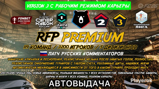 👉Состав мода: ⭐5 Лиг России - РПЛ, ФНЛ, ФНЛ2, ФНЛ3, ФНЛ4 ⭐Российские Комментаторы снова в игре! Георгий Черданцев и Константин Генич на своих местах ⭐3000 созданных игроков ⭐Сделаны последние зимние трансферы ⭐Кубок России в котором участвуют все 104 клуба , начиная с отборочных групповых и раундовых поединков ⭐Суперкубок России ⭐Реальное оформление для всех лиг созданым модом ⭐Реальные трофеи РПЛ , Кубка России и Суперкубка России ⭐Щиты ,Баннеры, шарфы, флаги для всех команд ⭐Рекламные щиты для всех лиг и турниров ⭐Около 300+ реальных лиц и многое другое ⭐20 Команд , участвуют в латиноамериканских кубках (Либертадорес, Судамерикана ,Рекопа) 🌍 НОВЫЕ ЛИГИ И РАСШИРЕННЫЕ ЧЕМПИОНАТЫ: 👉 Бразилия — 20 лицензированных команд с полной интеграцией в карьеру и международные кубки (Либертадорес, Судамерикана). 👉 Сербия — полноценный национальный чемпионат. 👉 Чехия — лицензированные клубы и составы. 👉 Кипр — добавлена высшая лига. 👉 Венгрия — обновлённый чемпионат с реальными командами. 👉 Греция — полноценная лига с актуальными составами. 👉 Хорватия — национальный чемпионат с реальными клубами. ✅Добавлены Сборные: 👉 Бразилия 👉 Сенегал 👉Колумбия 👉 Уругвай 👉Турция 👉 Япония 👉 Россия Только для ПК !!! ВСЕ ОБНОВЛЕНИЯ БЕСПЛАТНО ) ПОЛНОСТЬЮ РАБОЧАЯ КАРЬЕРА !!!!! Инструкция по установке в комплекте ! +BONUS пак других модов в подарок ) Внимание! При покупке вы получаете вечную ссылку на общую папку со всеми модами и обновлениями по мере выхода. При обновлениях модов заходить снова по ней же и там будут обновления и всякие бонусы !!!