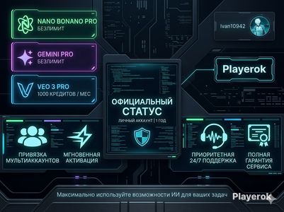 🚀 Доступ к VEO 3 и FLOW — современные инструменты для работы с видео и анимацией. 🗂️ 2 ТБ облачного хранилища — достаточно места для проектов, файлов и контента. 🧠 Доступ к Gemini 3 Pro — мощная модель для сложных задач и генерации контента. 💡 1000 AI-кредитов в месяц — для видео и других AI-операций. ⚙️ Интеграция с Google Workspace — работа с Gemini в Документах, Таблицах и на Диске. 🌟 Почему выбирают меня: 🔐 100% приватность — аккаунт полностью ваш, сразу меняете все данные. 💰 Лучшая цена за максимум возможностей. ⚡ Быстро, честно, без лишних действий. 📌 Как проходит подключение: 1️⃣ 💳 Оплачиваете заказ. 2️⃣ 🔑 Я Предоставляю аккаунт 3️⃣ 👀 Заходите, проверяете доступы и функции. 4️⃣ 🔄 Меняете пароль, подтверждаете заказ и начинаете пользоваться!