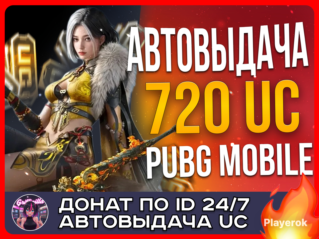 🛡️ • UC отправляются моментально на ваш аккаунт! 🕗 • Работаем 24/7. ❗️ Обратите внимание: не работает на аккаунтах с регионом Вьетнам, Индия, Корея, Тайвань и Япония. 🤔 • Как это работает?: 1. Выберите нужное количество UC 2. При оформлении обязательно укажите ваш ID в поле «Игровой ID» 3. Бот автоматически пополнит ваш аккаунт — без передачи данных 🔎 • Как найти свой ID: 1. Откройте игру PUBG Mobile 2. Нажмите на ваш аватар в левом верхнем углу 3. Скопируйте ваш ID — это набор цифр над ником Убедитесь, что ID указан правильно, так как мы пополняем баланс именно по нему В профиле есть много других позиций и номиналов UC!