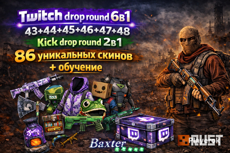 ❗Сразу выполняйте инструкцию ❓ После оплаты вам автоматически будут выданы: TWITCH аккаунт, после привязки которого вы получите ВСЕ нижеперечисленные скины в игре Rust + простейшая инструкция(активация занимает несколько минут). 🛒 Список скинов к получению: ☑️ 42 ROUND ☑️ 1. Vaybae AR, 2. Spiicy AR, 3. RavennRust AR, 4. VincentSMG AR, 5. Moons AR, 6. Wabbit Thompson, 7. Galaaxxy M249, 8. Tanizen MP5, 9. CaliRust Door, 10. elWasabiTM Door, 11. MonsteraArt Door, 12. Retuu Door, 13. Gorliac Vending Machine, 14. Gevad1ch SAP ☑️ 43 ROUND ☑️ 1. Kkatamina + ItsRyanHiga AR, 2. Emiru AR, 3. Sykkuno MP5, 4. Trainwreckstv's Blue Gem M249, 5. Kingdoms 3 Chestplate, 6. Kingdoms 3 Facemask, 7. Kingdoms 3 Kilt, 8. Foolish + Tinakitten Jacket, 9. Valkyrae + Cyr Door, 10. Fuslie + Peterpark Door, 11. Rustoria Fridge, 12. Abe Fridge, 13. Rustoria Locker, 14. Shoto + Michi Locker, 15. Ellum + Masayoshi Bag, 16. xChocobars + Starsmitten Tommy, 17. Shroud + Bnans Backpack, 18. hJune Backpack, 19. Willneff Chestplate, 20. Kingdoms 3 Rock, 21. Kingdoms 3 Boots ☑️ 44 ROUND ☑️ 1. Twitch Rivals SAP, 2. Twitch Rivals Crossbow, 3. Twitch Rivals Poncho, 4. Twitch Rivals Bandana, 5. Twitch Rivals Backpack, 6. Rustoria Garage Door ☑️ 45 ROUND ☑️ 1. Twitch Rivals VI Sofa, 2. Team Oilrats Bed, 3. Rustoria Bed, 4. Team Willjum Bed, 5. Twitch Rivals VI NeonSign, 6. Team Welyn Icepick, 7. Team Dhalucard Door, 8. Rustoria Drop Box, 9. Team Mendo HMLMG, 10. Team Nikof HMLMG, 11. Team hJune Bolt, 12. Team CoconutB Bolt, 13. Team Junin Thompson, 14. Twitch Rivals VI CinemaDB, 15. Team xXxTheFocuSxXx Door, 16. Twitch Rivals Wallpaper Purple, 17. Twitch Rivals Wallpaper Black ☑️ 46 ROUND ☑️ 1. Trust in Rust RoadVest, 2. Trust in Rust RoadKilt, 3. Trust in Rust Tactical Gloves, 4. Trust in Rust SAP, 5. Rustoria HMLMG, 6. Rustoria Ammo Box