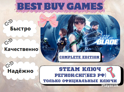🌍- Регионы активации ключа: Россия + Турция + Страны ЕС + Северная Америка🔥 (❌КРОМЕ ЛИТВЫ, ЛАТВИИ И ЭСТОНИИ❌) ⚠️ Важно: перед покупкой убедитесь, что регион соответствует вашему аккаунту Steam. ✅- Поддерживаемые языки: Русский, Английский и др. 🔥- После покупки вы получите: 🔑Ключ от игры Stellar Blade Complete Edition🔑 📄- Инструкцию по активации ключа в Steam ❗После успешного получения товара - Возврат невозможен ⛔- Если у вас неподходящий регион, то возврат за товар не осуществляется 🔸- Stellar Blade Complete Edition включает в себя: • Десантный костюм капитана для Евы • Набор ""Пушистый мишка"" для дрона • Бонусные материалы: - Костюм ""Звездочет"" для Евы - Очки в полуоправе для Евы - Серьги ""Четверной прямоугольник"" для Евы - Плащ звездочета для Лили - Одежда звездочета для Адама - Набор звездочета для дрона - 2000 ед. опыта умений - 5000 золотых монет в игре • Stellar Blade™: двойное дополнение: - Stellar Blade™ x NieR:Automata™ - Stellar Blade™ x GODDESS OF VICTORY: NIKKE