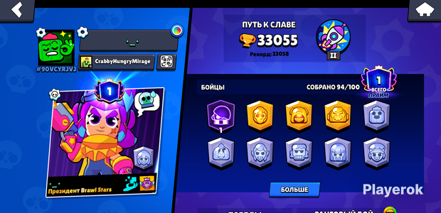 Аккаунт 2024 года, отлично подойдёт как твинк. 🏆 16 101 кубков 👤 75 бойцов (6 легендарных) ⬆️ 9 бойцов MAX уровня ⭐ 4 прайма 🏅 Мифическая лига 💰 Очень много ресурсов для прокачки • 42 182 монет • 10 003 блингов • 269 гемов • 19 203 очков силы 🎨 Скины • 2 гиперзарядных • 4 легендарных • 5 мифических • 43 эпических • 31 сверхредкий • 51 редкий • 3 коллаборационных 📈 Отлично подойдёт как второй аккаунт (твинк) благодаря большому количеству ресурсов. 🔒 Передача через перепривязку учётной записи.