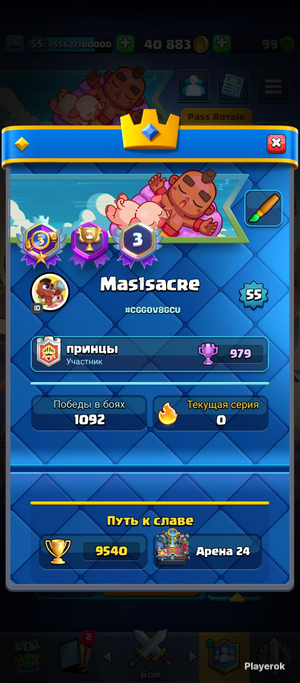 Продаю свой собственный акк На нем был куплен прошлый бп(также были куплены маленькие наборы ) Куплен пин ми- ми - ми гоблин Есть средная прокачка которая позволит вам собрать колоду Также после покупки забрать любого героя на перса сможете