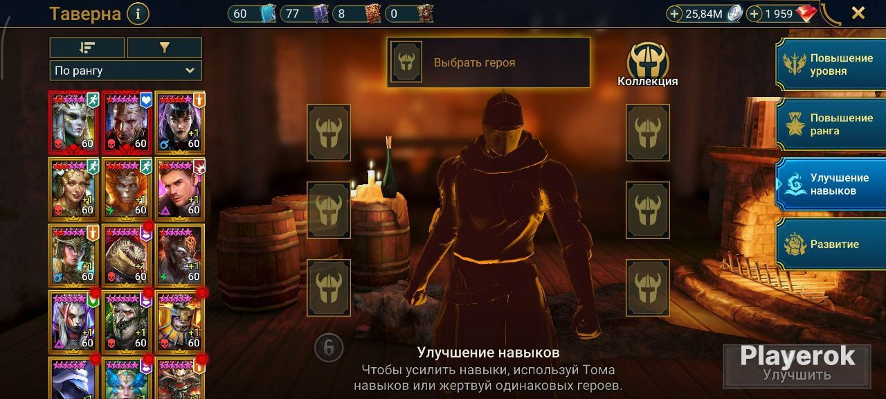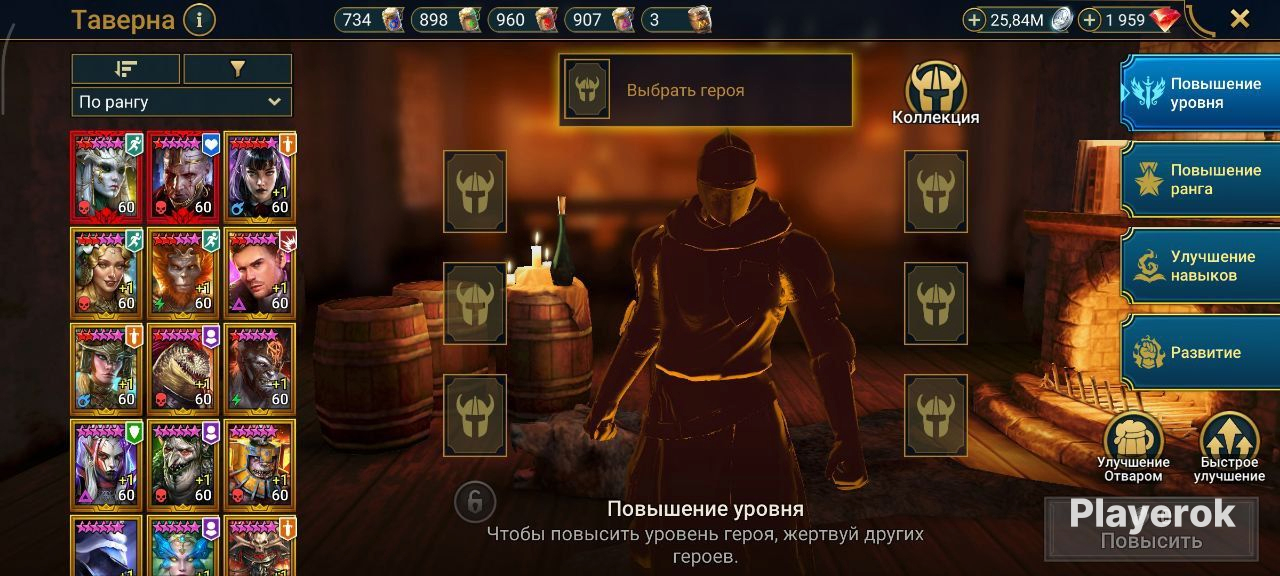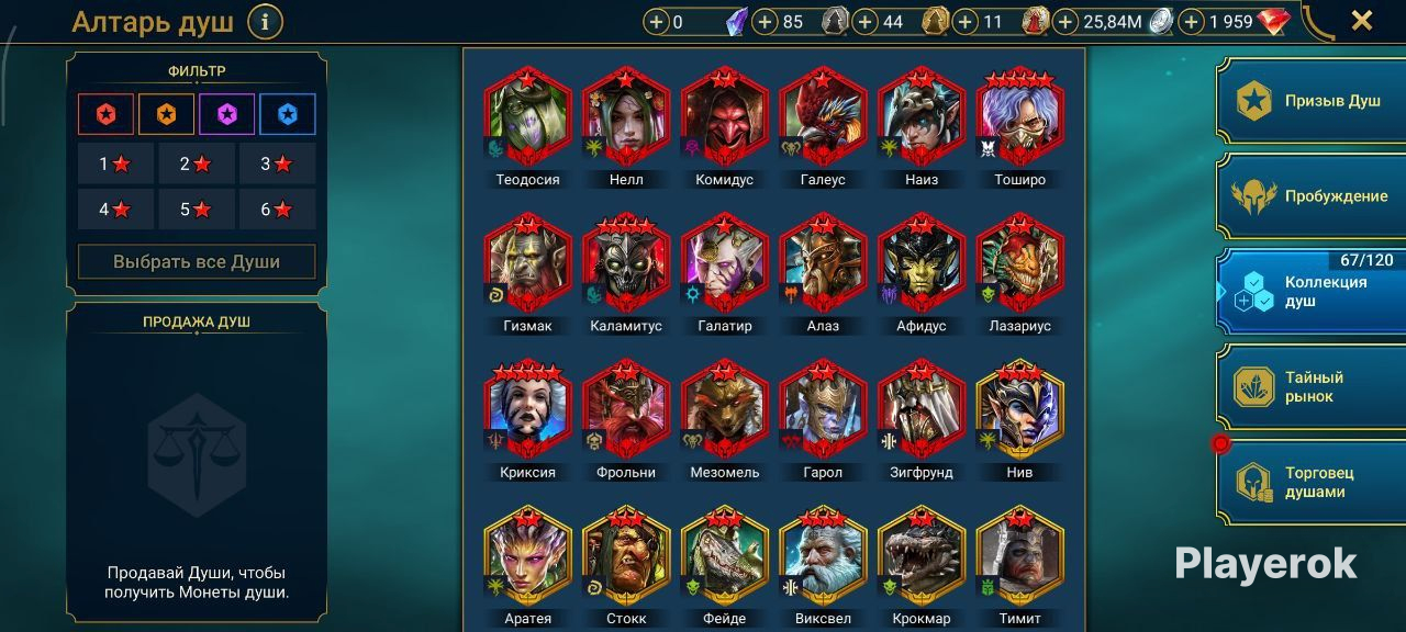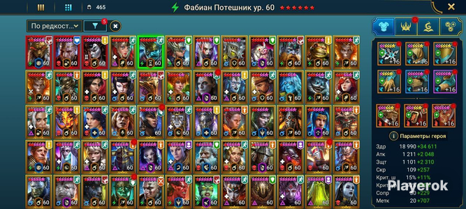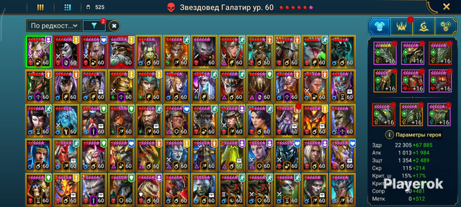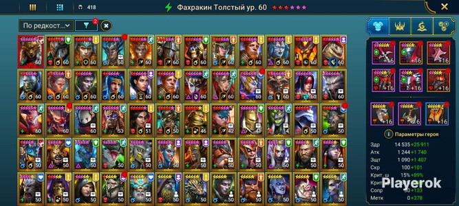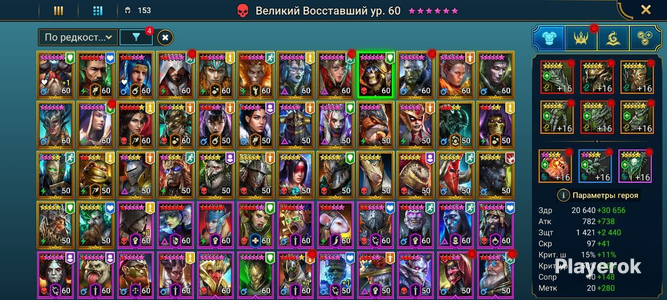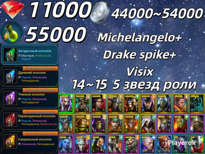 Топ персы Хорошие красные звезды Есть хорошие души и шарды Очень много ресурсов в таверне и кузнице Хороший зал 5 голем 8 паук 3 лава остальное фул Топ выбор