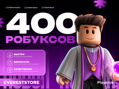 Купить робуксы очень просто! Выберите количество Robux в магазине, укажите ваш никнейм в Roblox для зачисления, оплатите удобным вам способом и получите робуксы на свой аккаунт за считанные минуты.